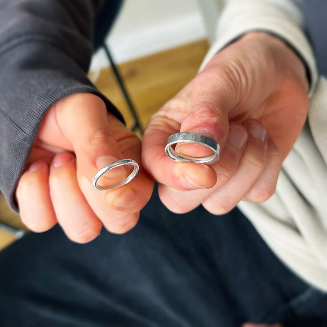 Het resultaat? Een set unieke trouwringen die niet alleen symbool staan voor jullie verbintenis, maar die jullie ook letterlijk met eigen handen voor elkaar hebben gemaakt.